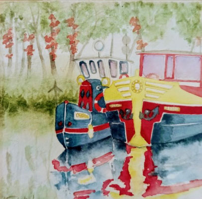 Passionnée d’aquarelle depuis quarante ans, j’ai profité de mes voyages liés à ma carrière d’enseignante pour saisir, au fil de l’Océanie et de l’Afrique, les atmosphères des paysages traversés. Revenue à Toulouse, je poursuis ma recherche des transparences, des nuances et des lumières, en peignant fleuves, rivières, canaux et mers, comme autant de messages lancés pour émouvoir celui qui les reçoit.
