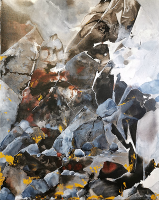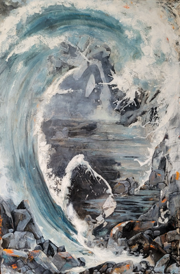 Née en Bretagne, elle a grandi dans un environnement où la nature impose sa présence : la mer, la roche, la lumière changeante. Cet ancrage dans un territoire à la fois rude et poétique nourrit profondément son rapport à la peinture. Le minéral et la matière reviennent souvent dans ses toiles. Ils incarnent la permanence autant que la fragilité, la résistance et la transformation.
