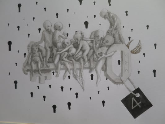 C'était rue de La Colombette, à la galerie Palladion, aujourd'hui disparue. On retrouva cet artiste, peu après, à Odyssud à Blagnac. On le revit depuis en bien des lieux, dont la toile, discrètement, ou publiquement, et souvent loin de Toulouse. Il est vrai qu'à bien y réfléchir, on signalait sa présence depuis longtemps, en divers points du globe, particulièrement dans les musées. Il est possible de repérer ses créations actuellement à Revel, à Paris, à Nantes, à Montpellier... On reconnaît sa trace dans "Melancholia II" de Durer. Il a signé depuis longtemps "Ali Baba et les quarante voleurs".