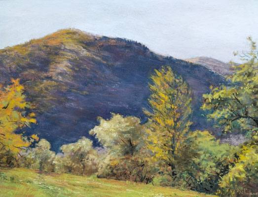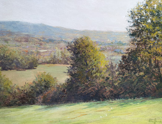 Bio : Aurore Puifferrat peint au pastel sec et tendre des paysages de montagne, en Ariège où elle vit depuis 14 ans, mais aussi des paysages de campagne creusoise dont elle est originaire et où des impressionnistes de l’Ecole de Crozant sont venus séjourner et peindre en leur temps : « Ces paysages et la Nature en général, invitent à respirer, à observer à nous émerveiller. De plus tous ces peintres m’inspirent encore aujourd’hui », explique-t-elle. Ainsi , ses paysages, dans la veine réaliste-impressionniste, ont une touche vibrante et lumineuse et la douceur de l’harmonie colorée.