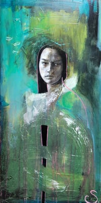 Mes compositions figurent des femmes, pour ce qu’elles portent, à la fois intemporelles et en présence dans des univers entre réel et abstraction.