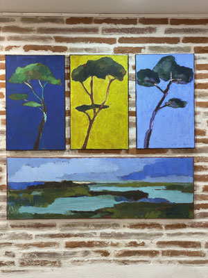 Démarche artistique (en quelques mots) :D’abord des balades en plein air puis une peinture instinctive, synthétique, une peinture où le regard cherche à saisir l’ambiance, la lumière d’un moment, une intensité, une profondeur. Des évocations de paysages, un rythme d’un tableau à l’autre, une quête d’équilibre, d’harmonie, de correspondance…